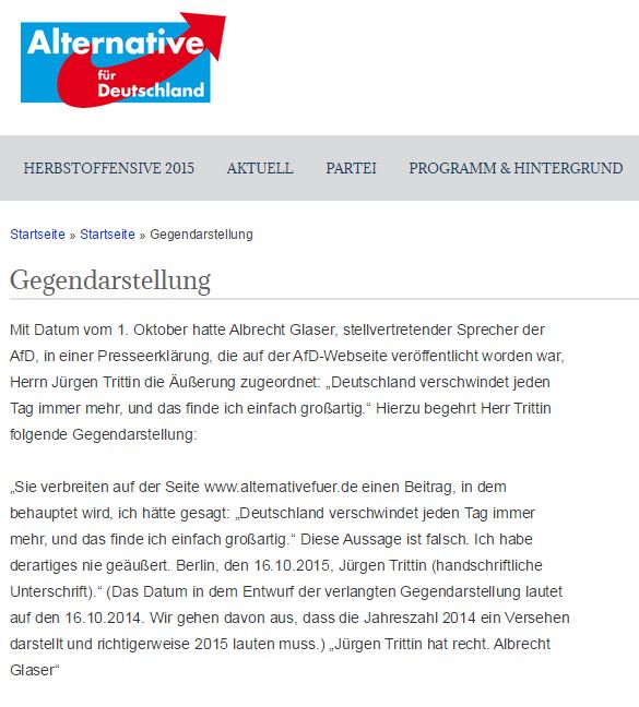 - Screenshot der AfD-Webseite vom 10.11.2015