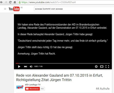 - Screenshot der AfD-Landtags-TV-YouTube-Seite vom 12.11.2015