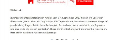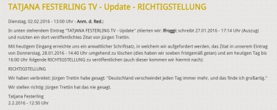 - Richtigstellung auf der Webseite von Tatjana Festerling