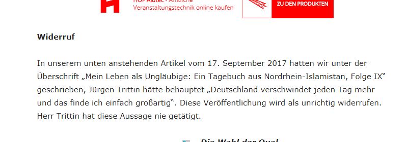 Leider halt immer klein und eine Randnotiz: das Erratum. Immerhin klargestellt von @DiePressecom #Trittin pic.twitter.com/jZ7e9L0wH6